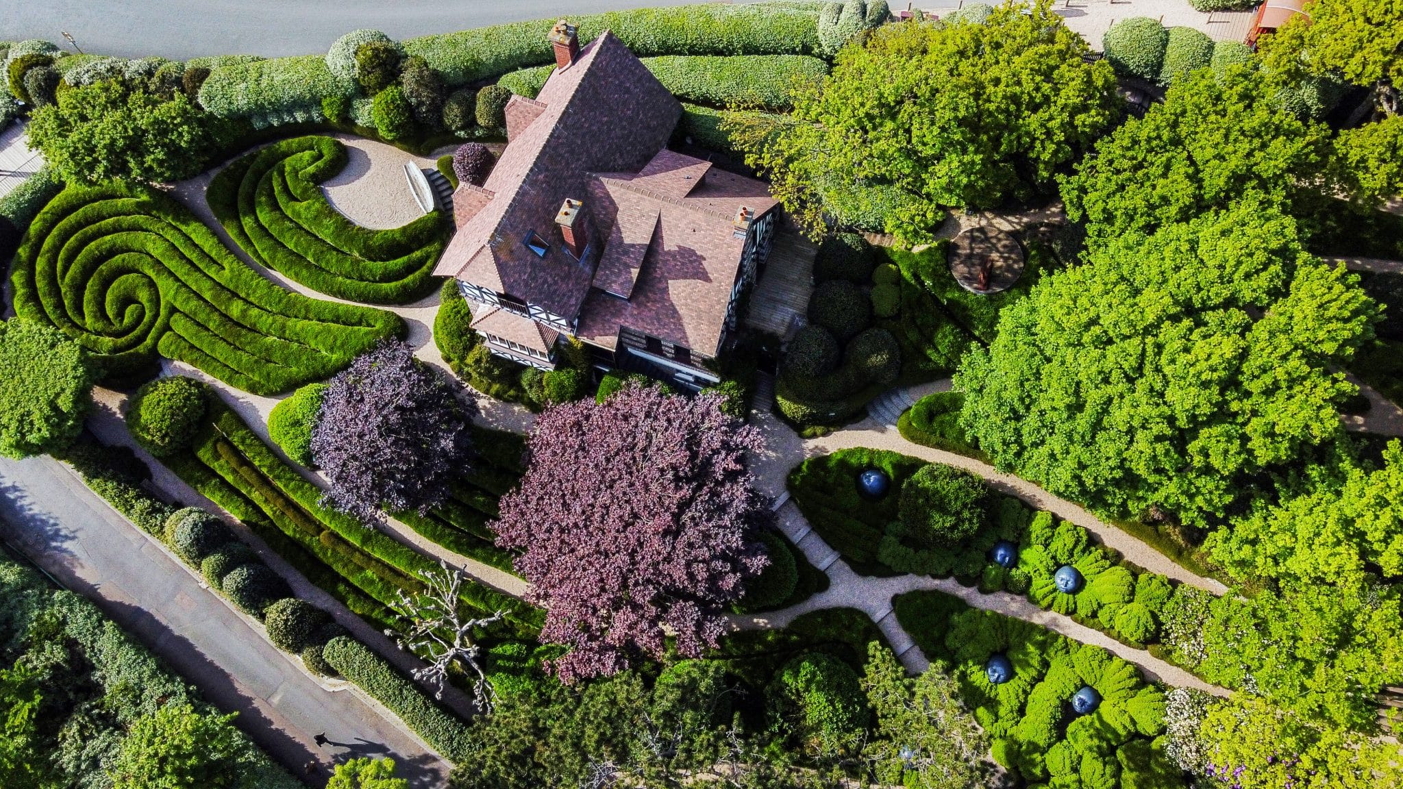 Du buis taillé en forme pyramidale, des troènes formant des spirales ou encore des ifs arrangés en boules sont autant d’arrangements paysagers que l’on trouve